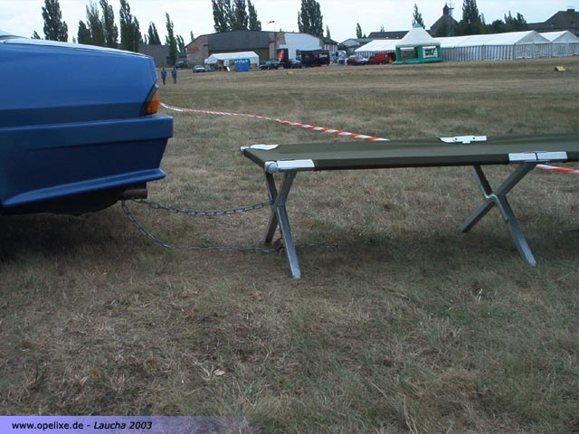 damit keiner mit dem Auto wegfährt wurde es an eine Bank geschnallt...