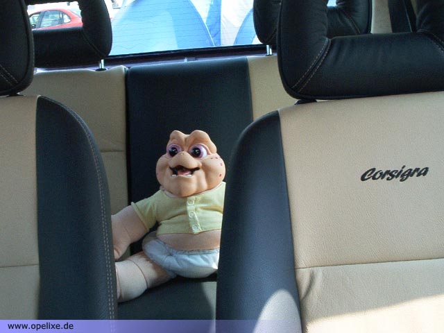 Baby Sinclair fährt im Corsigra auf der Rücksitzbank mit.